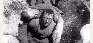 Picture: Raymond Darkes says this photograph shows his father carrying a wounded fellow soldier in the Battle of the Somme film.
