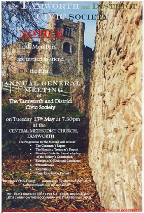 Tamworth and District Civic Society (TDCS) held its 1st AGM on Tuesday, 17th May 2016. For this milestone occasion we returned to Tamworth’s Central Methodist Church where the society’s auspicious Public Launch meeting took place last September. There was a very pleasing attendance.