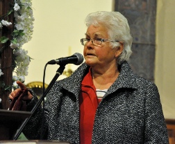 Former Tamworth Mayor and Council Leader Irene Davies speaking at the Public Meeting in Wilnecote last October held to oppose plans by Staffordshire County Council to demolish the old Wilnecote Schools.